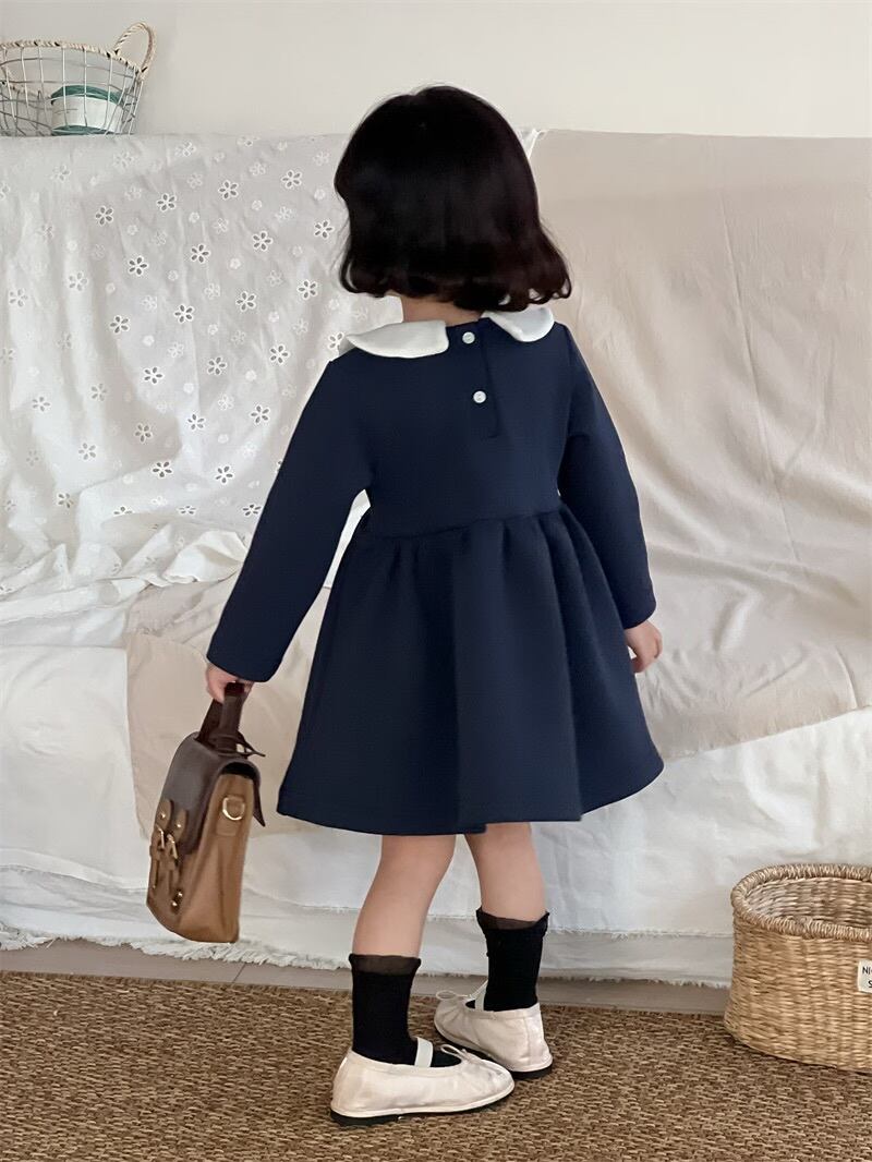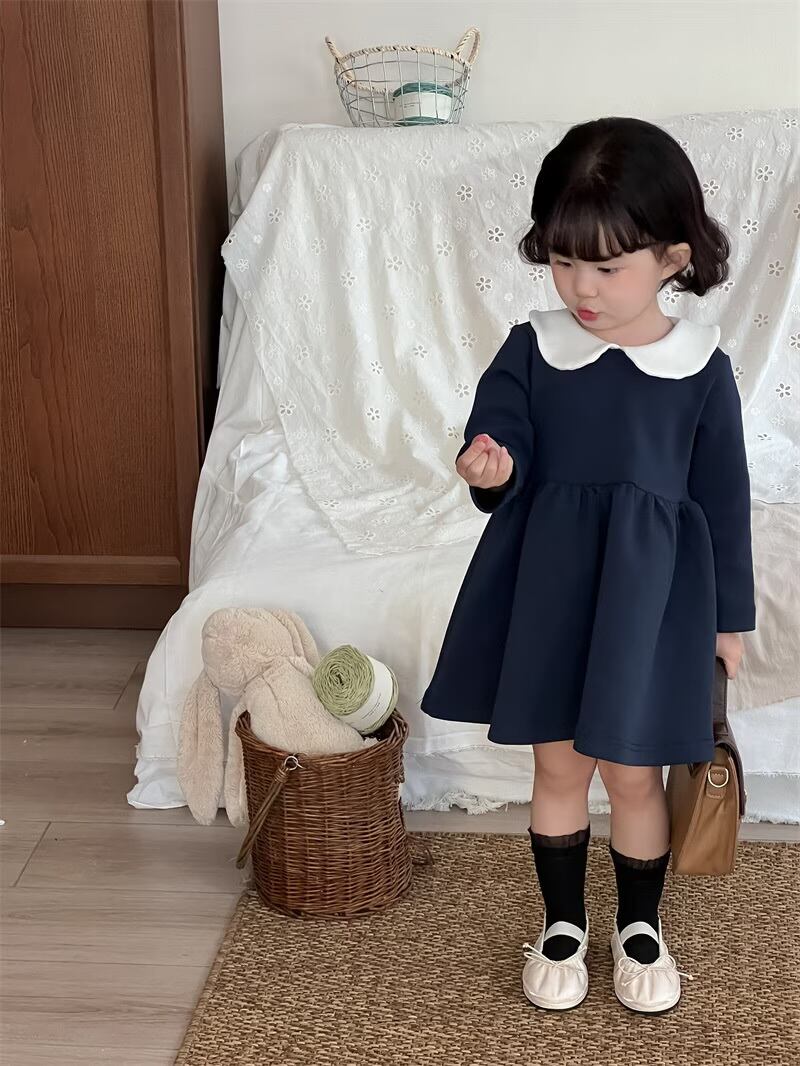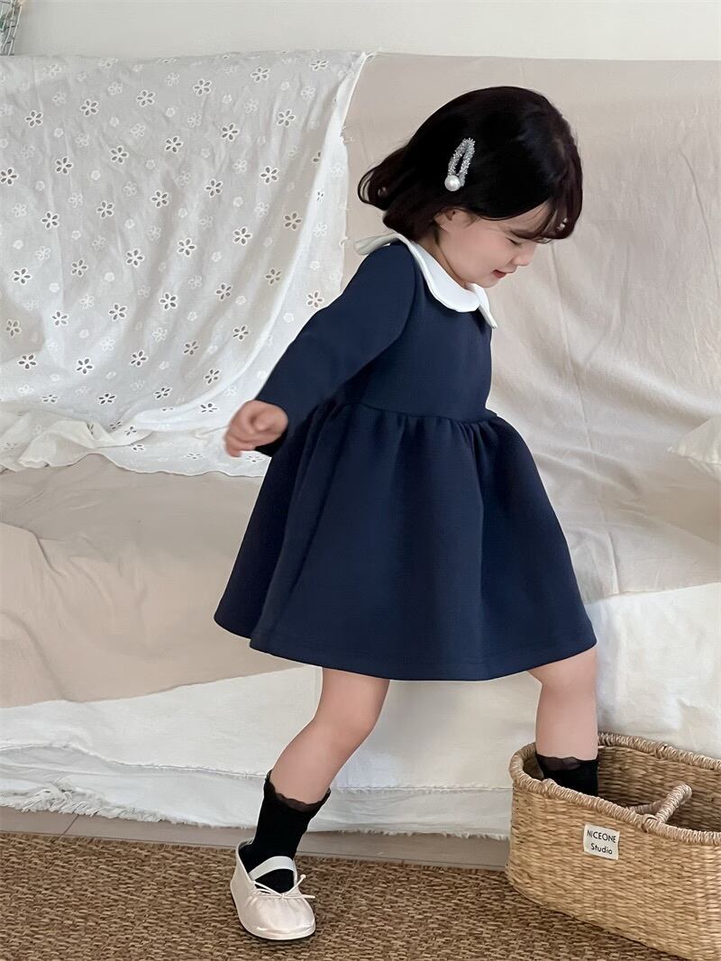【送料無料☆予約商品】襟付きセレモニーネイビーワンピース フォーマル 春夏 秋冬 ニット ベビー ドレス 結婚式 バースデー セレモニー お宮参り お呼ばれ 赤ちゃん 子供 キッズ