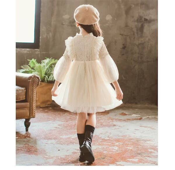 【送料無料☆予約商品】長袖レース&チュールドレス 春夏 秋冬 ニット ベビー ドレス 結婚式 バースデー セレモニー お宮参り お呼ばれ 赤ちゃん 子供 キッズ