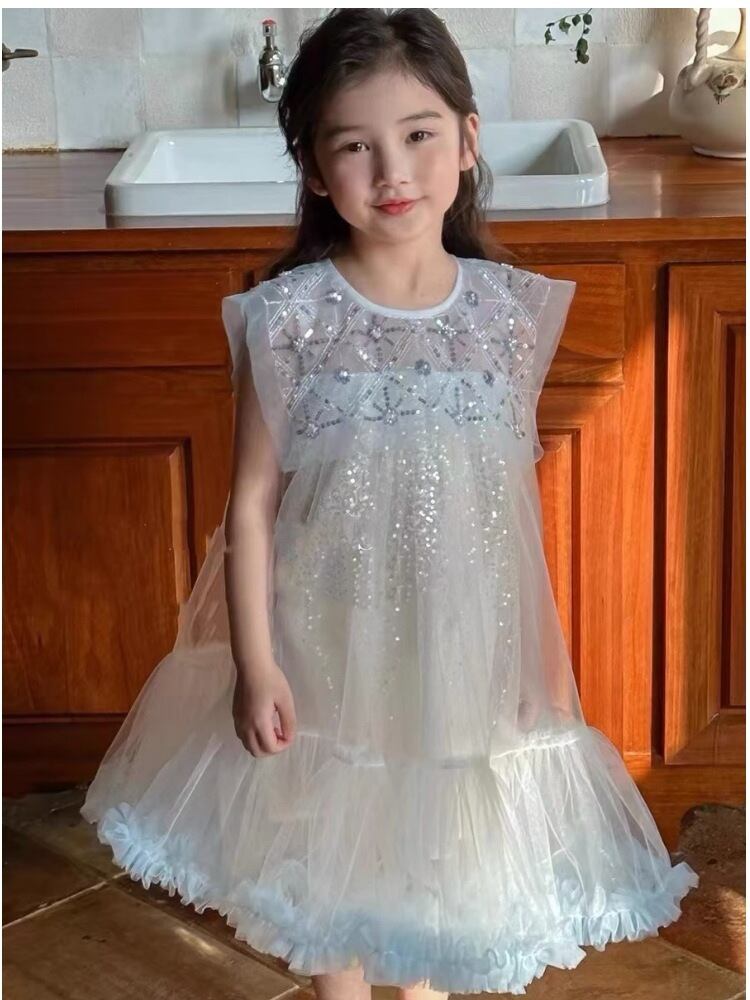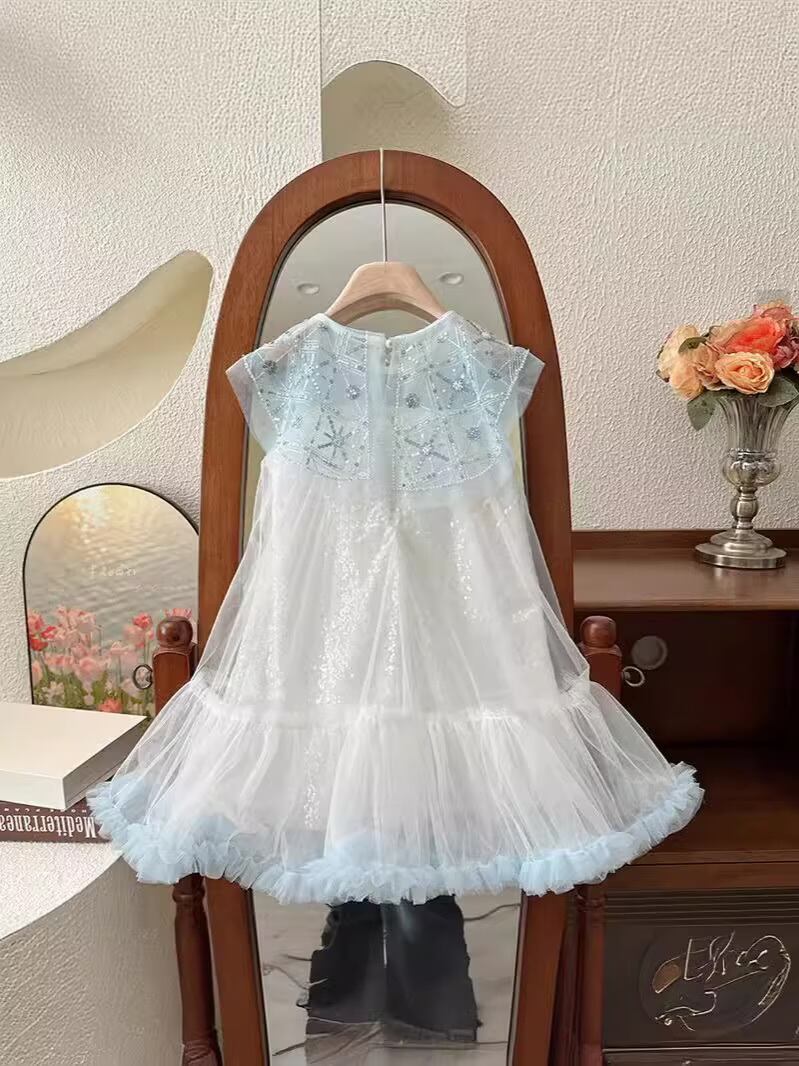 散りばめられたスパンコールが可愛いブルードレスです♪