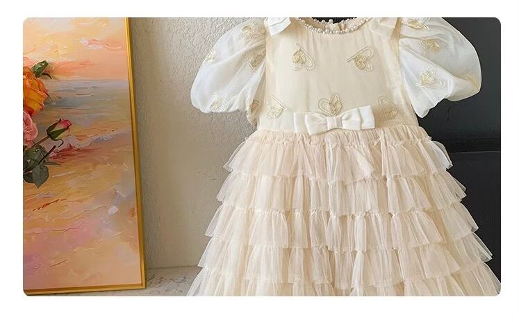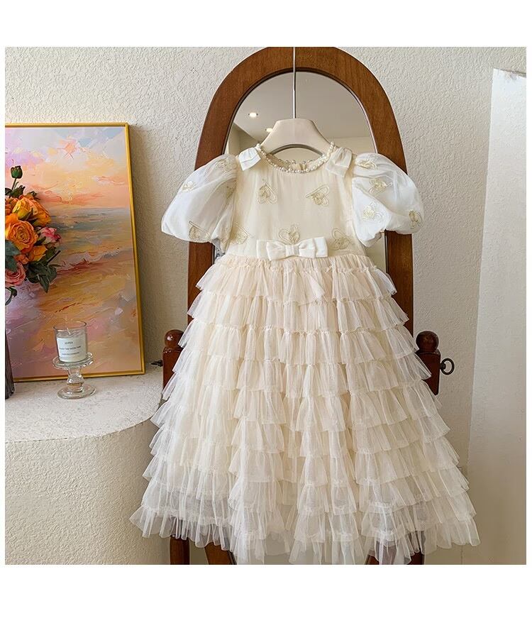 リボンの付いたパフスリーブと細かなチュチュが可愛いドレスです♪