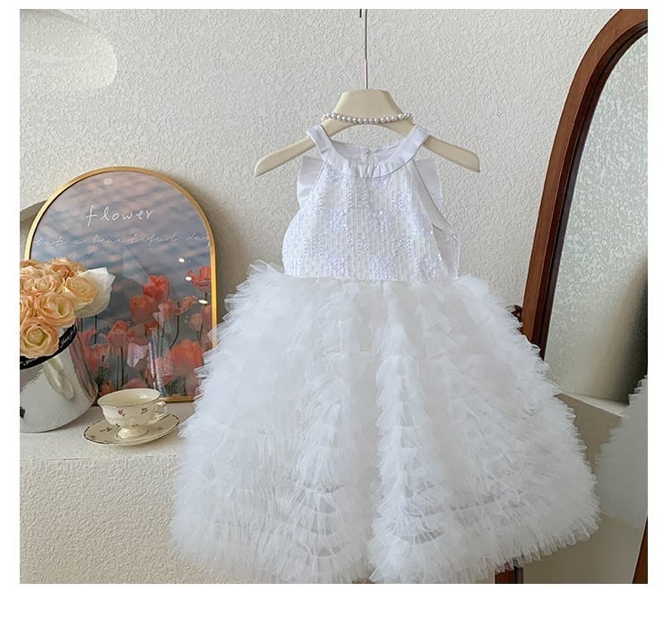 細かなチュチュと背中の大きなリボンが可愛いドレスです♪
