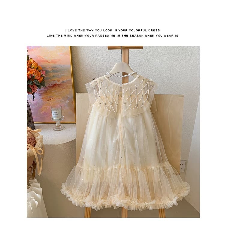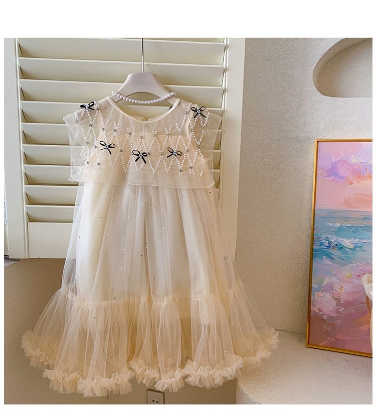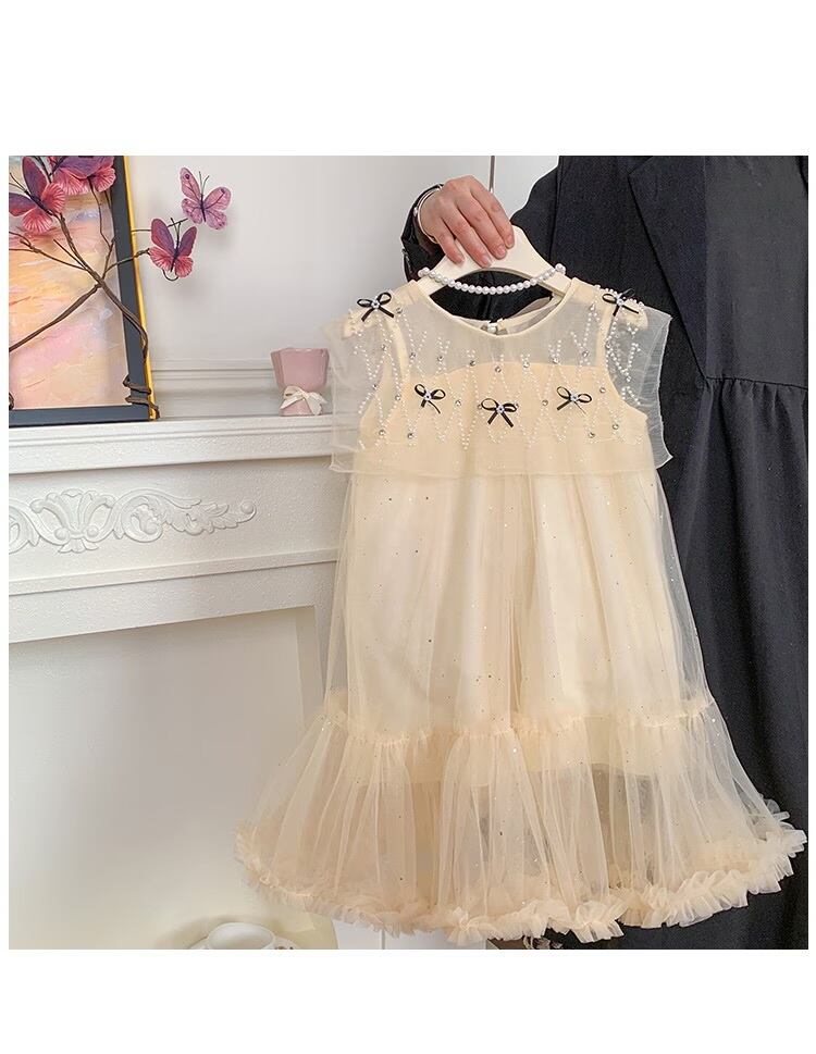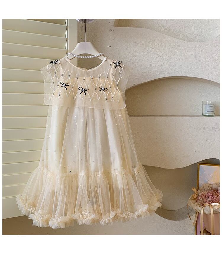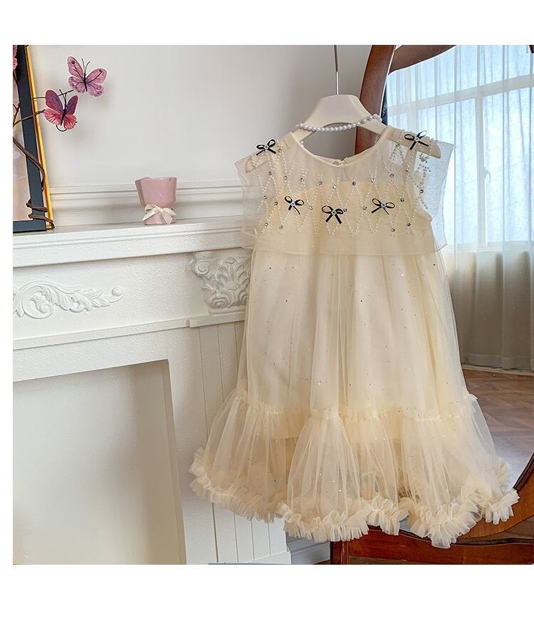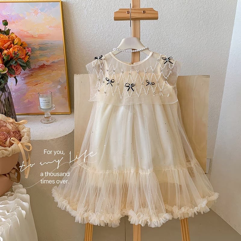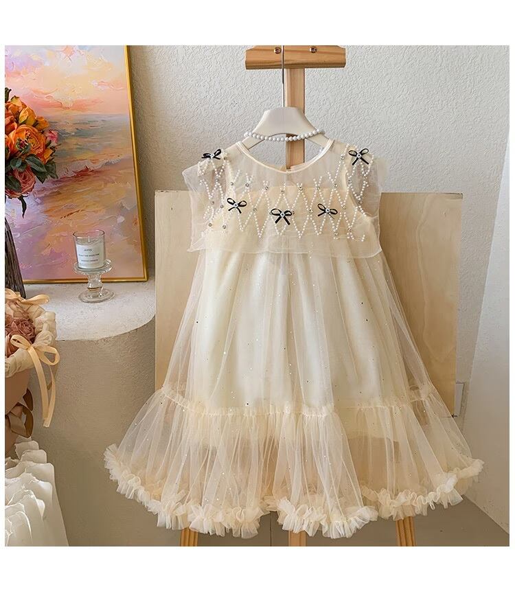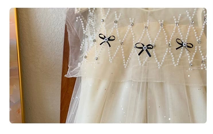 【送料無料☆予約商品】パール&リボンスパンコールチュールドレス 春夏 秋冬 ニット ベビー ドレス 結婚式 バースデー セレモニー お宮参り お呼ばれ 赤ちゃん 子供 キッズ
